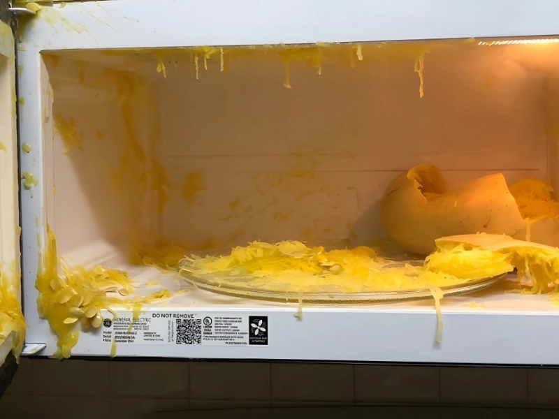 Spaghettikürbis-Pasta und Mikrowellen? Eine schlechte Kombination, wie @shirleyawilson auf Instagram zeigt.