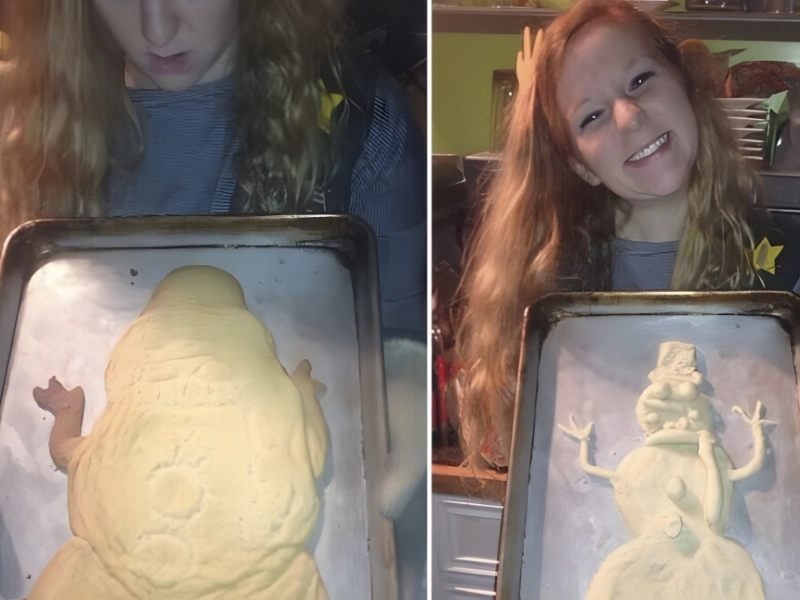 Die Idee war zwar niedlich, doch dieser Schneemann-Keks ging beim Backen gründlich schief. Aus einer weihnachtlichen Leckerei wurde Slimer aus Ghostbusters. Um den Keks zu retten, müsste man ihn wohl einfach grün verzieren.