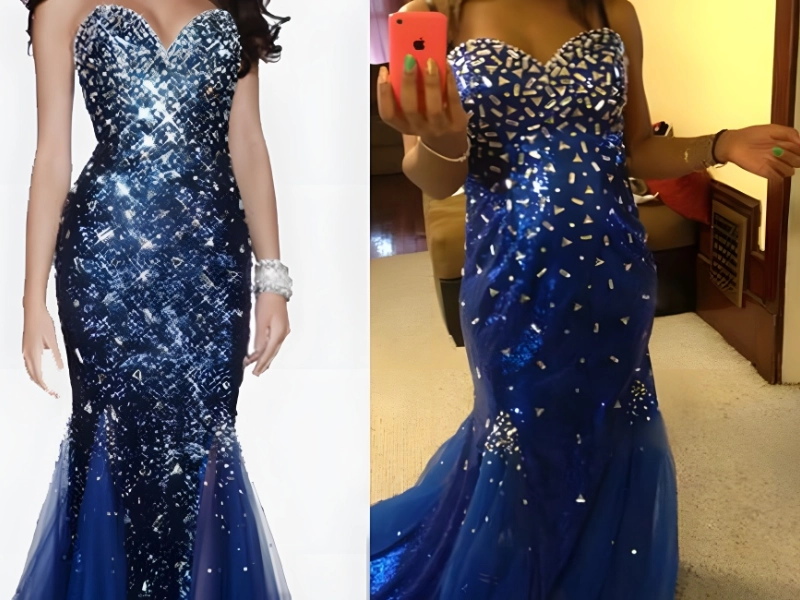 Partykleid mit blauen Diamanten @KnockOffNightmares/Facebook