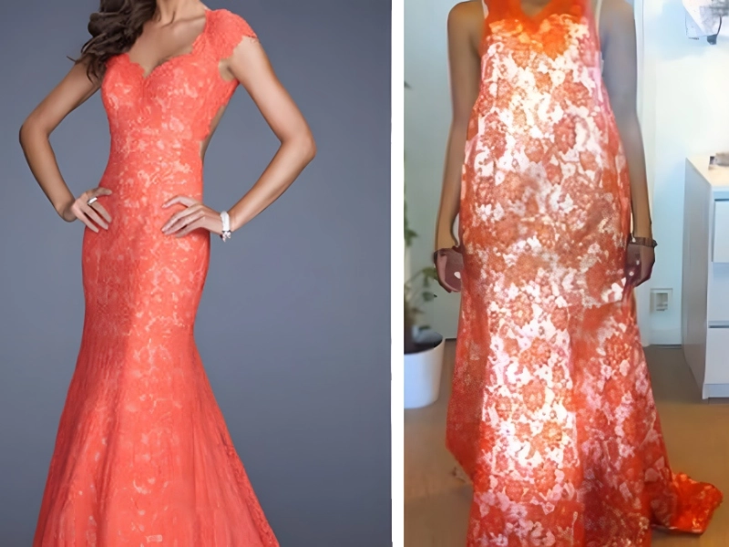 Kleidung gehört nicht zu den vielen Artikeln, für die AliExpress geeignet ist. Diese Website ist dafür bekannt, bei Kleidern und anderen Waren konsequent zu enttäuschen. In diesem Fall wurde aus einem atemberaubenden orangefarbenen bodenlangen Spitzenkleid ein Albtraum, der einem hässlichen Ausschlag ähnelt.