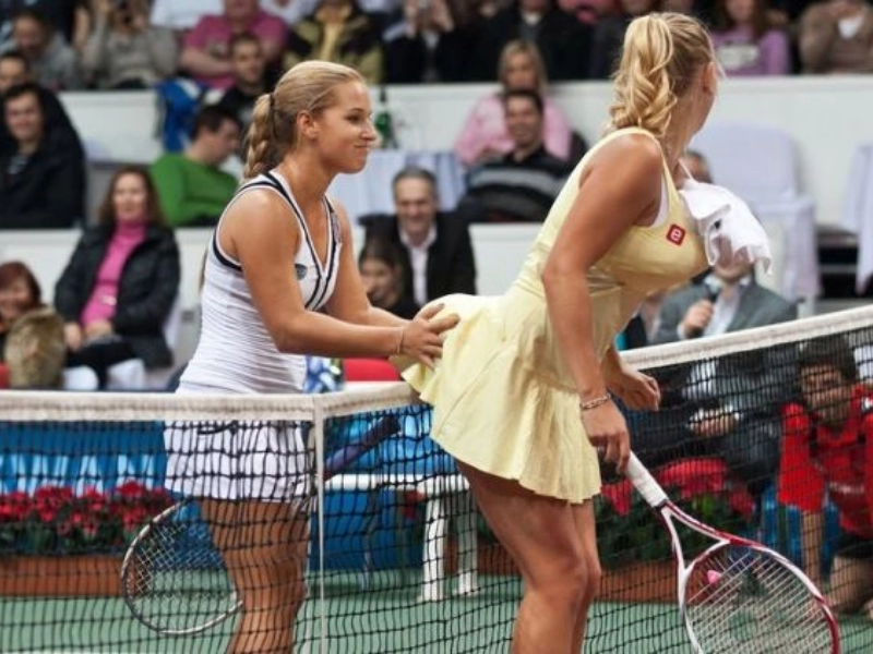 Die Tennisspieler haben sichtlich ihren Spaß – auch abseits des eigentlichen Spiels.