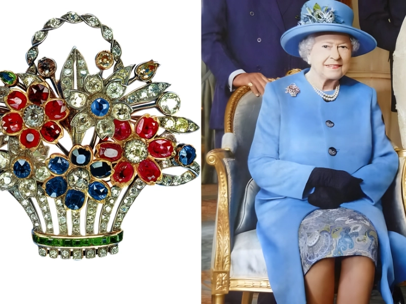 Die Blumenkorb-Brosche von Queen Elizabeth II., @Suzanne Chenoweth, @Edwin Hutcheson und Pinterest