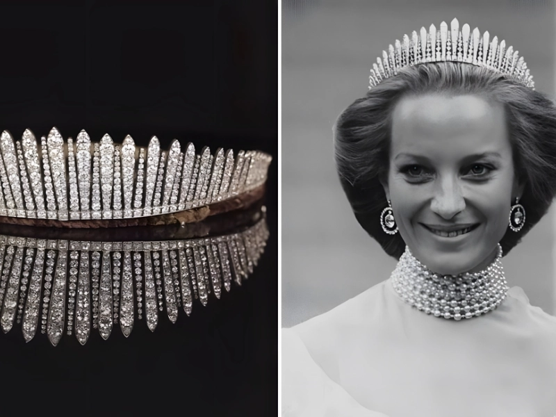 Obwohl sie sich sehr ähneln, ist dieses Diadem nicht mit dem Vladimir-Fringe-Diadem zu verwechseln, das die Prinzessin am Hochzeitstag trug. Obwohl Marina das Diadem nicht zu ihrer Hochzeit trug, schmückte sie sich damit bei einer Reihe anderer wichtiger Anlässe, wie dem Staatsbesuch Griechenlands im Jahr 1963.