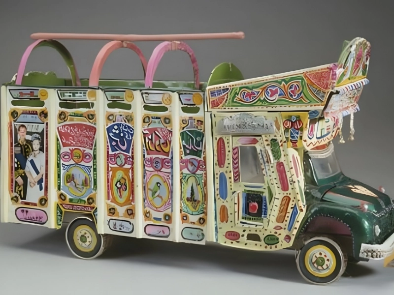 Die sogenannte "Truck Art" entstand in den 1940er Jahren in Pakistan und vereint traditionelle Motive aus Sikhismus und Islam mit moderneren Elementen wie dem Gesicht von Königin Elizabeth II. Interessanterweise ist der bekannte britische Politiker Boris Johnson ein begeisterter Hobby-Maler von Modellbussen.