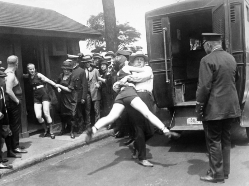 Die Verhaftung von Frauen wegen unzüchtiger Badeanzüge im Juli 1922.