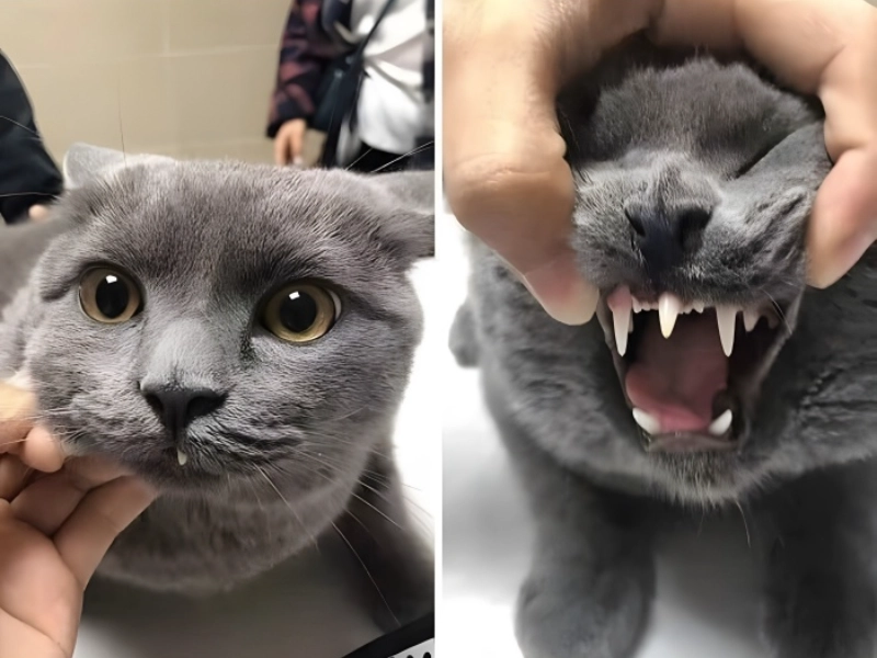 Was diese Katze auszeichnet, sind zusätzliche Zähne rund um das Maul, ein Zustand, der als überzählige Zähne (Supernumerary Teeth) bekannt ist. Aufgrund seiner Seltenheit ist dieses Kätzchen wirklich einzigartig. Er hat ein markantes Lächeln, da er genau in der Mitte seines Mauls einen zusätzlichen Zahn hat, der leicht hervorsteht. Abgesehen von seinen paar Fangzähnen ähnelt er tatsächlich einem Vampir, was einige scherzhafte Spekulationen über seine wahre Natur befeuert. Ist er ein als Katze verkleideter Vampir? In Anlehnung an sein einzigartiges Aussehen hat dieses besondere Kätzchen Spitznamen wie Vampirkatze, Fangzahn, Fledermauskatze oder Hakenzahn erhalten. Kein Forensik-Team könnte mit solchen Zähnen herausfinden, was Sie gebissen hat! Aber lassen Sie sich davon nicht erschrecken; es besteht kein Grund zur Sorge. Diese Katze ist kein Vampir und nach wie vor sehr verschmust. Indem er gerne mit seinem Spielzeug spielt und sich bei seinen menschlichen Freunden einkuschelt, zeigt er, dass selbst hinter dem ungewöhnlichsten Aussehen die schönste Persönlichkeit stecken kann.