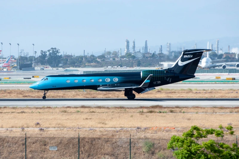 Le Gulfstream G550 personnalisé de Nike est une vitrine volante impressionnante de l'identité de marque puissante et de la créativité exceptionnelle. Le dégradé dynamique et fluide du bleu foncé profond au bleu clair lumineux, accompagné du swoosh iconique emblématique et du slogan motivant Juste fais-le, fait de ce jet un outil de marque puissant et efficace. Le design reflète parfaitement l'engagement profond de Nike envers l'excellence remarquable et l'innovation constante, transformant l'avion en un symbole impressionnant de présence mondiale et d'aspiration inspirante. Ce jet n'est pas simplement un moyen de transport pratique, mais une déclaration audacieuse de style distinctif et d'ambition extraordinaire.