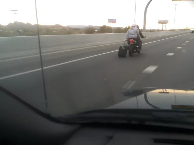 Lorsque votre taxi annule votre course pour l'aéroport, c'est la panique totale car vous ne voulez surtout pas rater votre vol. Ne parvenant pas à trouver un Uber, ces hommes ont imaginé un autre plan : transporter le passager et ses bagages à l'aéroport à moto. Bien que l'idée soit ingénieuse en théorie, elle s'est avérée catastrophique dans la pratique. Ce bagage n'était clairement pas destiné à arriver à l'aéroport de cette façon, et ils ont très probablement dû appeler un taxi de secours sur l'autoroute.