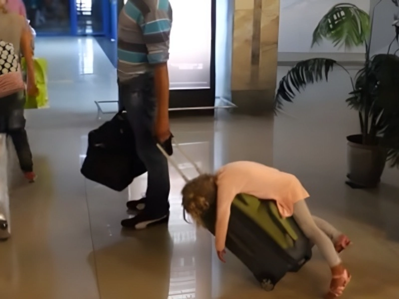 Cette jeune fille est une métaphore parfaite de ce que tout le monde ressent dans un aéroport. C'est un processus épuisant qui vous oblige souvent à rester debout pendant des heures dans les files d'attente pour la sécurité, le contrôle des passeports ou la récupération des bagages. De plus, les retards intensifient le désagrément d'être coincé à l'aéroport. Nous pensons que cette fille a accompli quelque chose de vraiment brillant. Non seulement elle a pu faire une sieste, mais en plus, son père a pu la porter jusqu'à l'avion pendant qu'elle dormait.