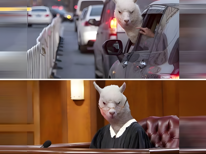 Sur la première image, l'alpaga évalue les compétences de conduite de quelqu'un ; sur la seconde, il évalue les perspectives de conduite de cette personne.