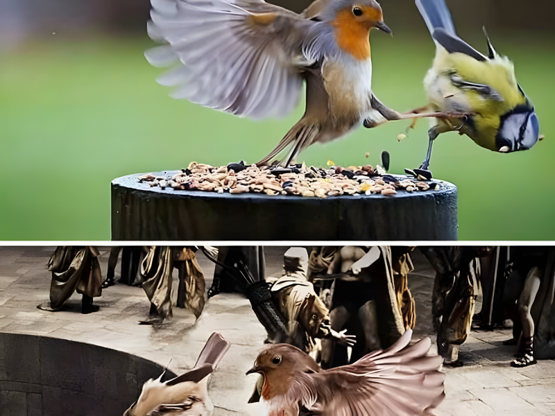 Il était inévitable de retoucher cette image d'un oiseau en train d'en frapper un autre pour de la nourriture.