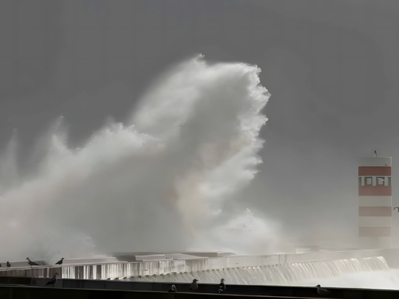 Si nous nous trouvions sur place, nous ne ferions pas preuve de la même indifférence et du même calme apparent que les oiseaux sur cette photo. Cette image capture une jetée pendant une violente tempête, avec des vagues gigantesques qui se brisent sur la structure avant de retomber dans l'océan.