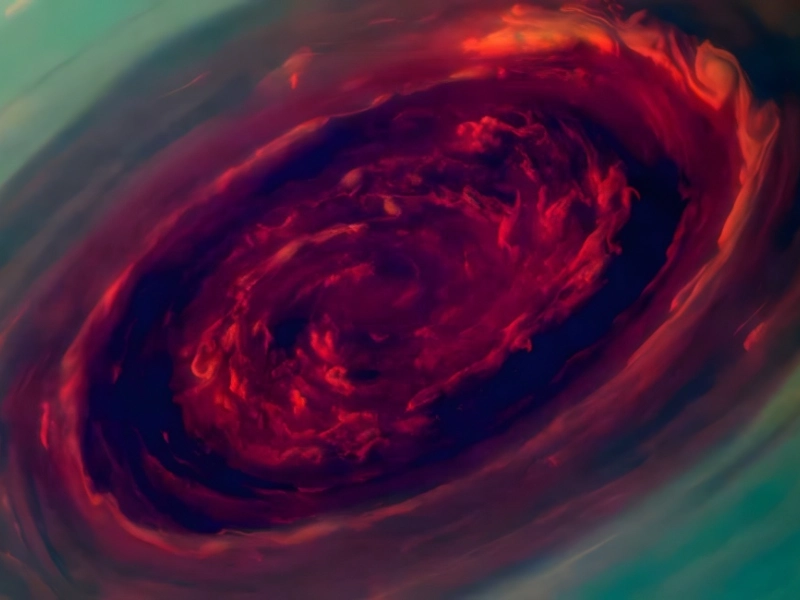 Saturne, la planète qui abrite les plus grandes tempêtes du système solaire, possède un ouragan persistant au-dessus de son pôle nord. Cette tempête, parfois comparée à la Grande Tache Rouge de Jupiter mais de nature différente, est une "méga-tempête", un phénomène rare qui se produit une fois toutes les quelques décennies et qui englobe des nuages d'ammoniac.