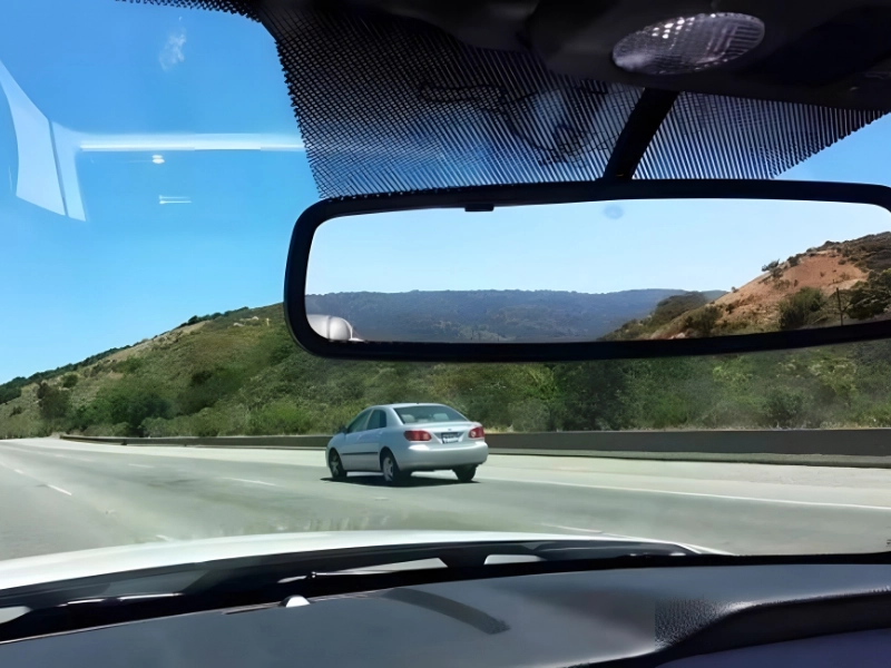 この写真を共有した人物は、運転中にバックミラーに映る景色と前方の景色が完璧に融合していることに気付きました。