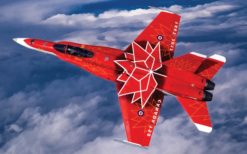 カナダ空軍CF-18デモ機は国家的誇りと工学的優秀性の真の象徴です。あまり目にする機会は少ないですが、広く賞賛されるこの航空機は、カナダ人と航空ファンの両方を魅了します。そのカスタム塗装には、カナダの象徴的なモチーフであるメープルリーフが芸術的に表現されています。2017年のカナダ建国150周年記念祭で披露されたこのCF-18は、同国の航空史における画期的な出来事を記念しています。最高速度1,127マイル(1,814 km/h)で飛行可能で、その大胆な外観は性能に見合ったものとなっています。この速度では、磨き上げられた表面が一瞬だけ視界に飛び込んできます。ジェット機の精巧なデザインと完璧な仕上げは、美しさと機能の両方に対するカナダ空軍の献身を反映し、CF-18デモ機を現代飛行の真の驚異としています。