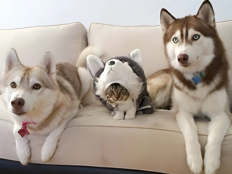 犬たちはもうスパイに気付いたでしょうか?シーンは遊び心のあるかくれんぼのゲームの設定で、一人の人物が専門的に環境に溶け込みながら、好奇心旺盛な犬が手がかりを探しています。この写真は狩りの緊張と興奮を捉え、擬態と発見の両方の永遠の魅力を思い出させます。