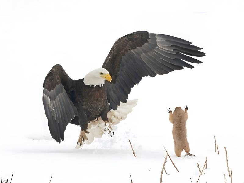「降参!」このユーモラスな画像は動物界における明らかな敗北の瞬間を捉え、面白く愛らしい場面を創り出しています。被写体、おそらく毛皮または羽の生えた生物は、人が諦めるように不気味に似たポーズで捕らえられています。おそらくそれは前足を上げたアライグマ、後ろ足で立ち前足を上げたプレーリードッグ、または甚至広く翼を広げた鳥です。動物はいくつかの見えない闘争において敗北を認めているように見え、その姿勢と態度が結合して人間のボディランゲージのほとんど完璧な模倣を創り出します。この擬人的性質が画像を非常に印象的で面白くしているものです。写真家の非の打ち所のないタイミングはこの split-second のポーズを凍りつかせ、鑑賞者が人間の感情と意図を動物に投影することを可能にしています。生物が実際に降参しているわけではありませんが、人間の行動への類似は明白で楽しいものです。この画像は楽しませるだけでなく、動物界への私たちのつながりを思い出させ、種を超えたボディランゲージの驚くべき類似性を強調します。これは自然界でそのように正確に時間を計られ表現力豊かな瞬間を捉える写真家の技術の証です。