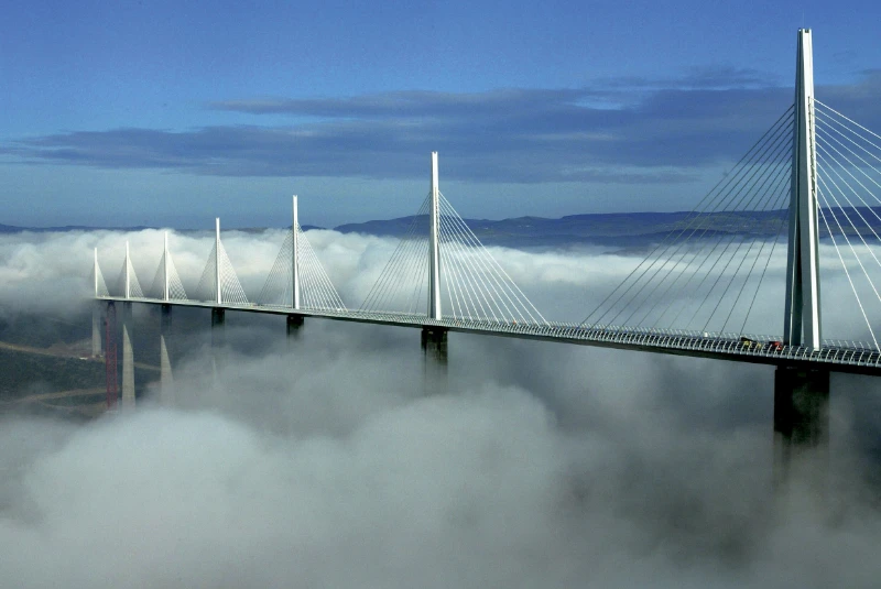 その大きさにもかかわらず、橋の7本の細い支柱と斜張橋設計は軽快さを与えています。霧のかかった日には、雲の上に浮かんでいるように見え、全長8,071フィート(2,460メートル)がその壮大さを増しています。この橋を渡ることは、高所恐怖症の人にとっては困難であり、特に下の広大な落下が見えるときはなおさらです。 先進的な材料と技術で建設され、橋は風景とシームレスに調和する鋼鉄のデッキを特徴としています。その強力な安全対策により、すべての車両にとって安全な旅が確保され、パリからバルセロナへのA75高速道路の重要な部分となっています。