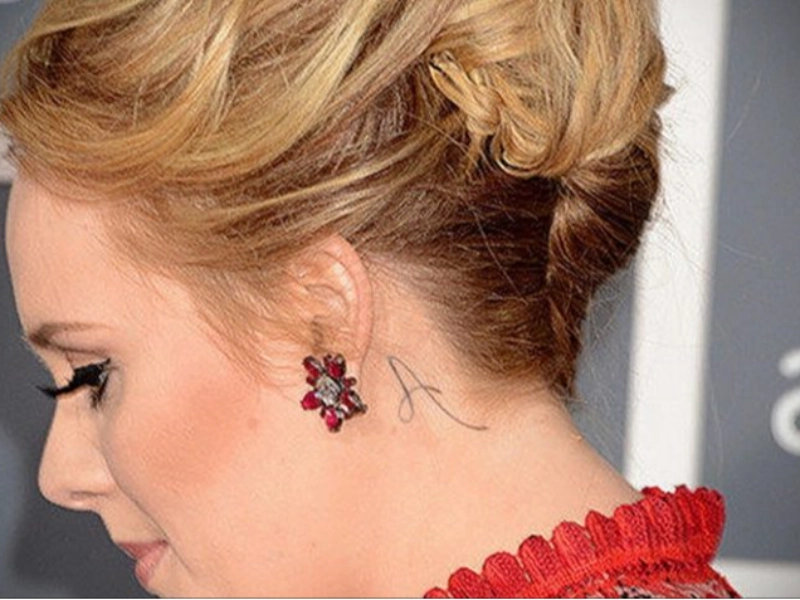 息子アンジェロが生まれた後、アデルは左耳の後ろに「A」の文字のタトゥーを入れました。このシンプルなデザインは、彼女の子どもへの愛を表し、彼がもたらす幸せを常に思い起こさせるものです。 このタトゥーは、母親としての役割と息子と共有する深い絆の、控えめで個人的な象徴です。
