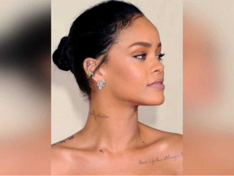 星のタトゥーに加えて、リアーナは首、鎖骨、肩にいくつかの銘を刻んでいます。特に注目すべきタトゥーは逆向きに書かれており、「どんな失敗も常に教訓である」と述べています。このメッセージは、回復力と挫折から学ぶことのリマインダーです。 彼女はまた、右耳に小さな星を持ち、タトゥーコレクションに遊び心のあるアクセントを加え、星をモチーフにしたテーマへの愛を強化しています。